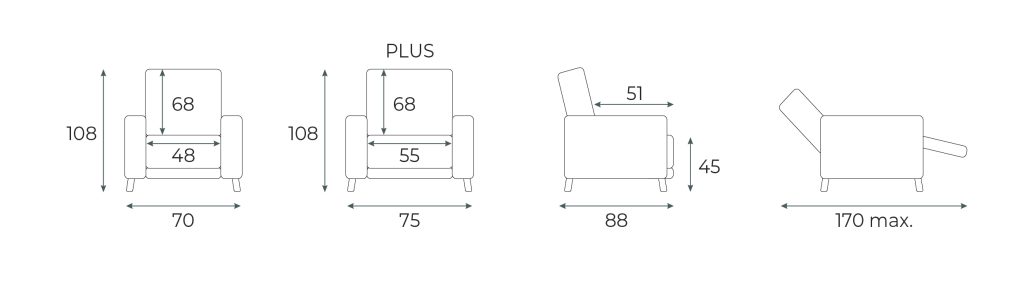 Disponible Versión PLUS (+5 cm de hueco asiento y soporte de hasta 150kg. frente a los 120kg. de la versión estándar).